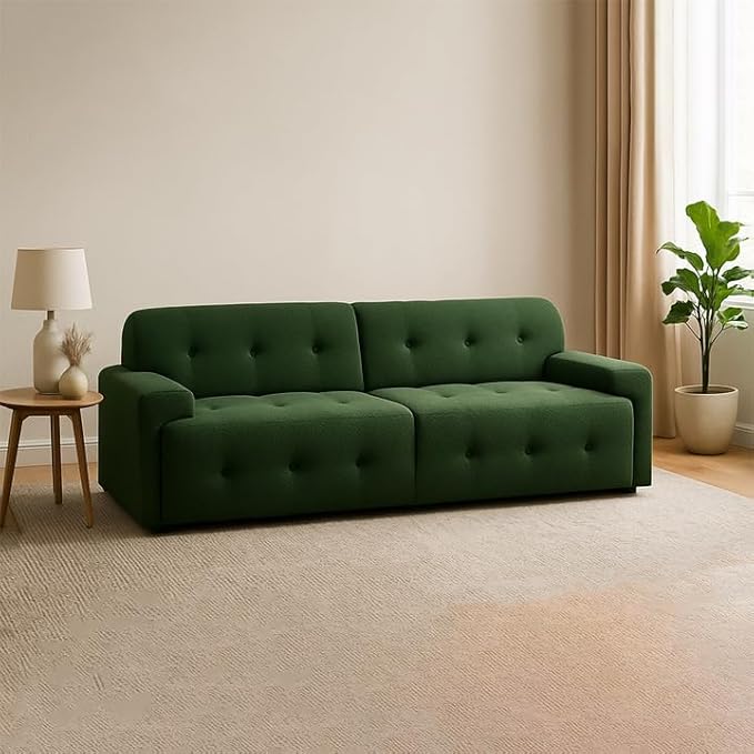 Upgrade your living space with the Poppins HOME modern green fabric sofa — where comfort meets style. This elegant 3-seater sofa features a rich textured fabric, deep button tufting, and wide armrests for superior relaxation. Its sturdy frame ensures long-lasting durability while the soft cushions provide unmatched comfort, making it the perfect centerpiece for your living room, office, or lounge. Whether you’re entertaining guests or unwinding after a long day, this sofa blends seamlessly into any contemporary interior.