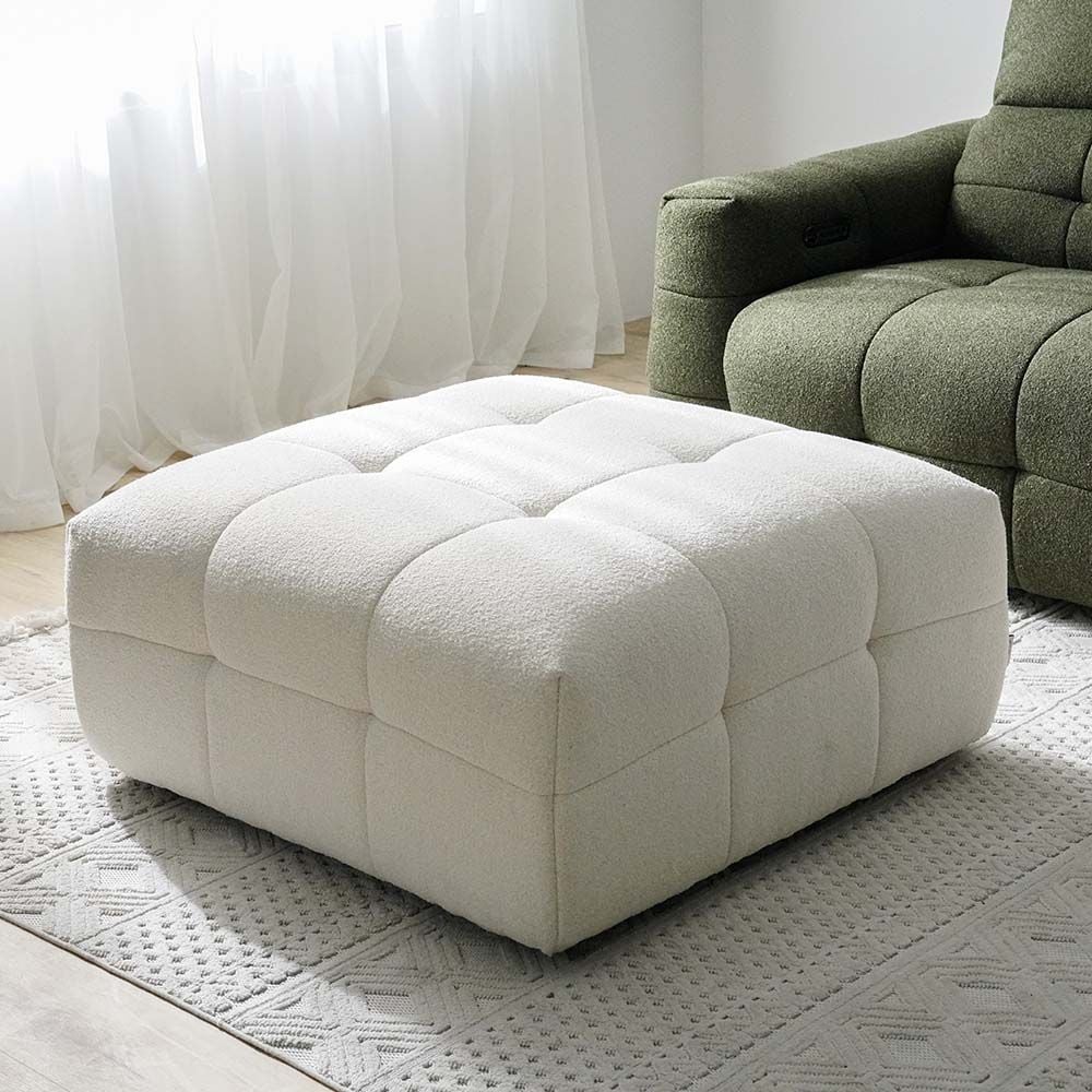 Poppins HOME Modern Cloud Modular Sofa Set – Ultra Soft Bouclé Fabric Sectional Couch for Living Room, Lounge & Reception – L-Shaped Design (Cream white, 1-Ottomon)