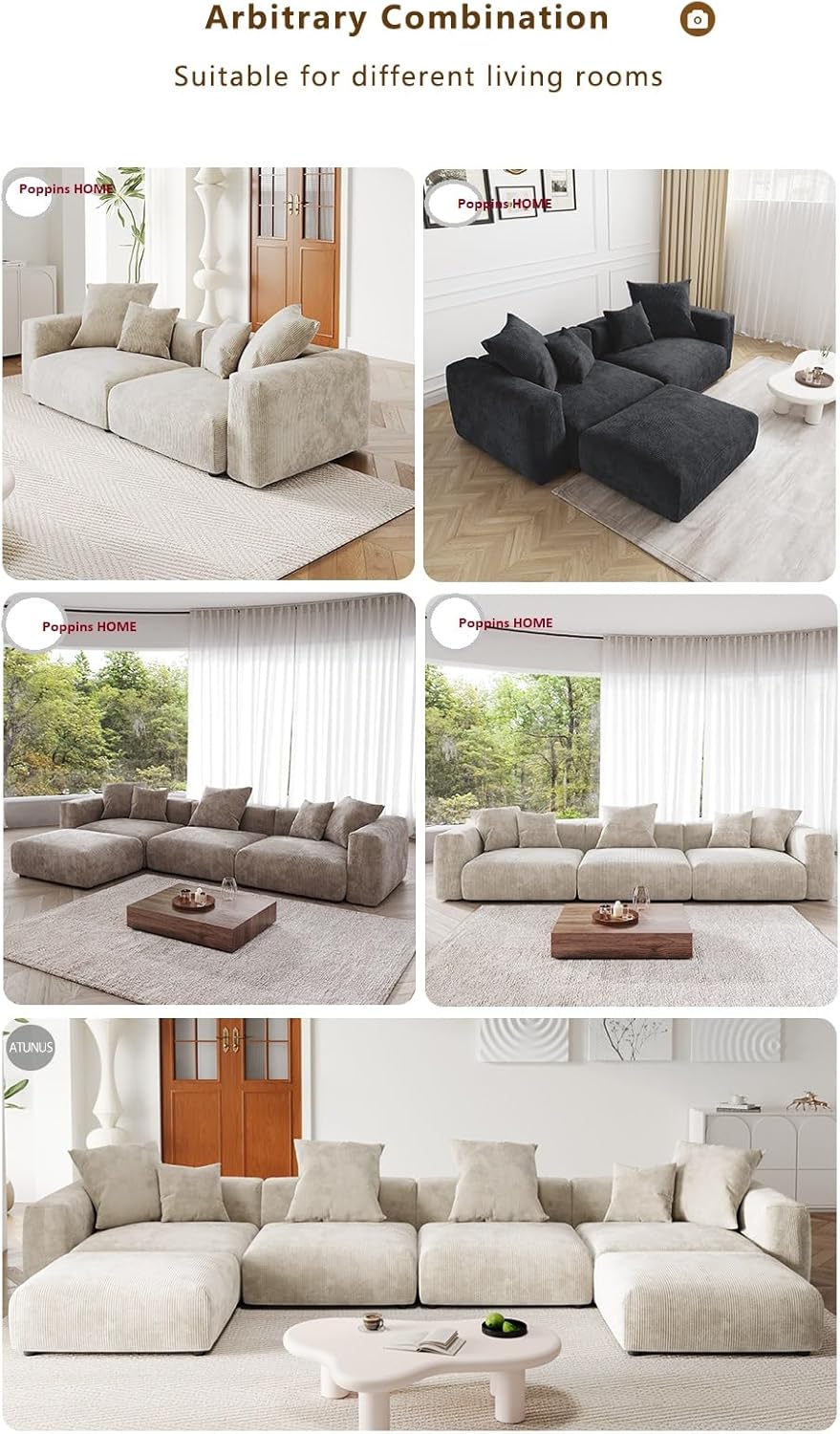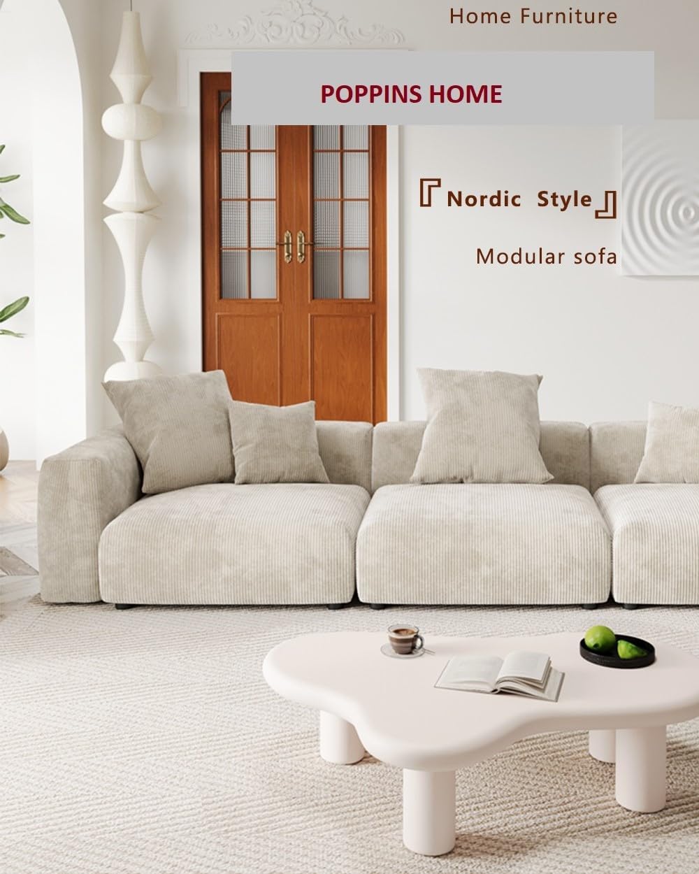 Poppins HOME Modern Luxury Modular Leather Sofa 3 Seater Sectional Couch with Adjustable & Extensible Design for Stylish Living Room/Office/Hotel Seating (Beige, 4 seater + 2 ottoman)