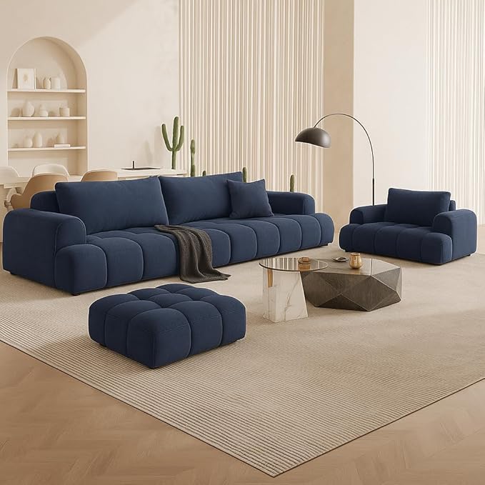Poppins HOME Modern Upholstered Sectional Sofa with Tufted Cushions Italian Minimalist Modern Design Furniture Fabric Lounge Couch Corner Set Furniture Living Room (Blue, 2 Seater)