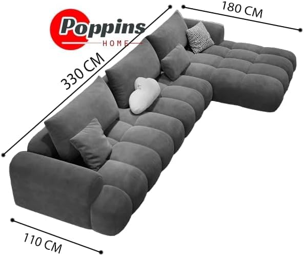 The Poppins HOME Office Lounge Sofa is the perfect solution for modern living spaces. It is spacious, modular, stylish, durable, user-friendly, and comfortable. Made with high-quality composite fabrics, the Poppins sectional sofa ensures the highest quality and durability. Its sleek, minimalist design provides a contemporary look that guarantees both comfort and visual appeal. The materials used in this sofa offer longevity, making it suitable for daily use and perfect for busy households. Our sofa is easy to assemble and maintain with a modular design, solving the need for flexible and comfortable seating. The Poppins Office Lounge Sofa measures 330cm x 180cm x 110 cm, making it ideal for various living room sizes and configurations. Available in different colors to match your interior decor, it is perfect for homeowners and office environments seeking a blend of functionality and modern style.