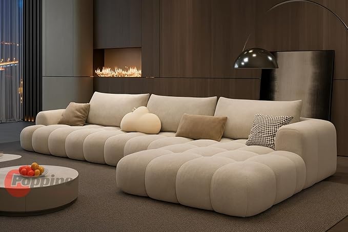 Poppins HOME Office Lounge Sofa – Modular L Shape with Minimalist Design, Composite Fabrics, Sectional for Living Room, Modern Floor Sofas (Offwhite, LEFT)