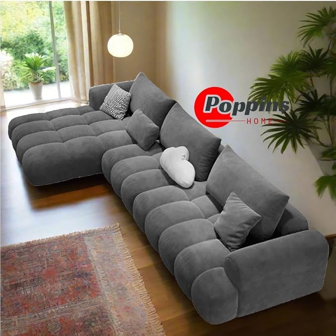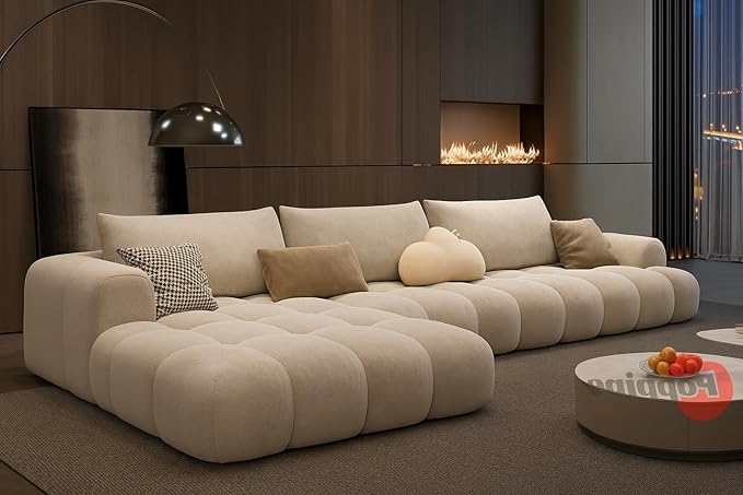 Poppins HOME Office Lounge Sofa – Modular L Shape with Minimalist Design, Composite Fabrics, Sectional for Living Room, Modern Floor Sofas (Offwhite, RIGHT)