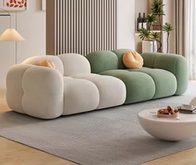 Poppins HOME Popular Sofa Set Furniture Living Room Sofa Modern Luxury Soft Velvet White Design Couch Cloud Elegant Fabric Sofa for Home (Beige+ Green, 2 Seater +1+Ottoman)