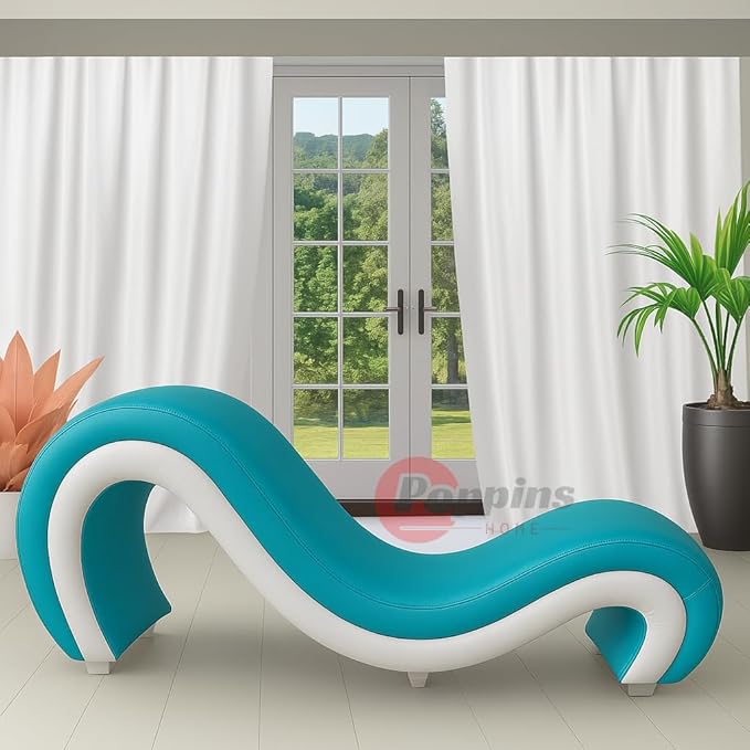 Poppins HOME S-Shape Yoga Chaise Lounge – Modern Curved Lounger Chair for Stretching, Relaxation & Posture Support – Stylish Upholstered Accent Furniture (Blue and White)